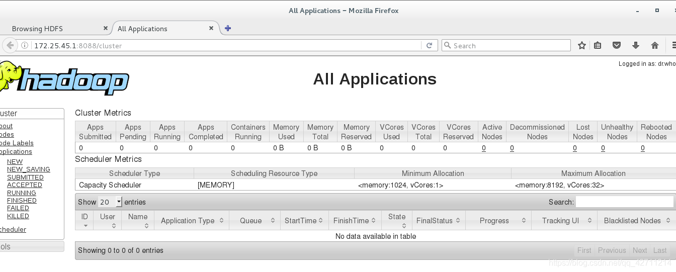 在浏览器中测试:172.25.45.1:50070