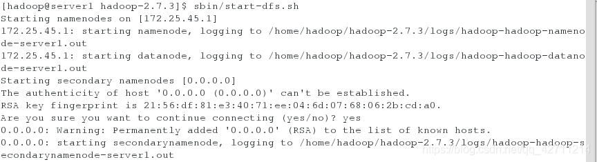 [hadoop@server1 hadoop-2.7.3]$ sbin/start-dfs.sh