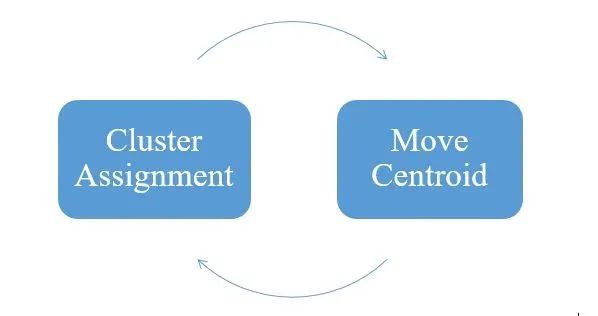 K-Means算法是最流行但最简单的无监督算法。对于散布在n维空间中的所有数据点,它会将具有某些相似性的数据点归为一个群集。在随机初始化k个聚类质心之后,该算法迭代执行两个步骤: