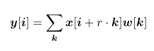 公式1.输出特征图y中位置i的公式,换句话说,图2中绿色矩阵中的正方形之一。x是输入信号,r是原子率,w是滤波器,k是内核