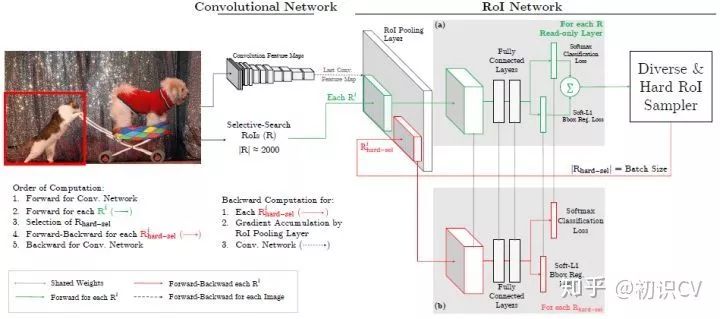 但在OHEM的工作中,作者提出用R-CNN子网络对RoI Proposal预测的分数来决定每个batch选用的样本,这样,输入R-CNN子网络的RoI Proposal总为其表现不好的样本,提高了监督学习的效率。