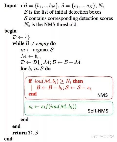 配合Deformable Convnets(将在之后的文章介绍),Soft NMS在MS COCO上取得了当时最佳的表现。算法改进如下: