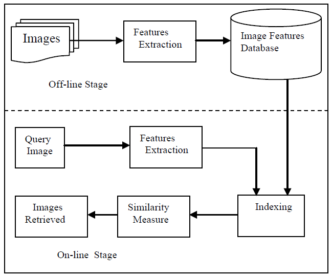 基于内容的图像检索(CBIR)是一种基于给定图像的相关图像检索系统。该系统由图像查询和图像数据库两部分组成。