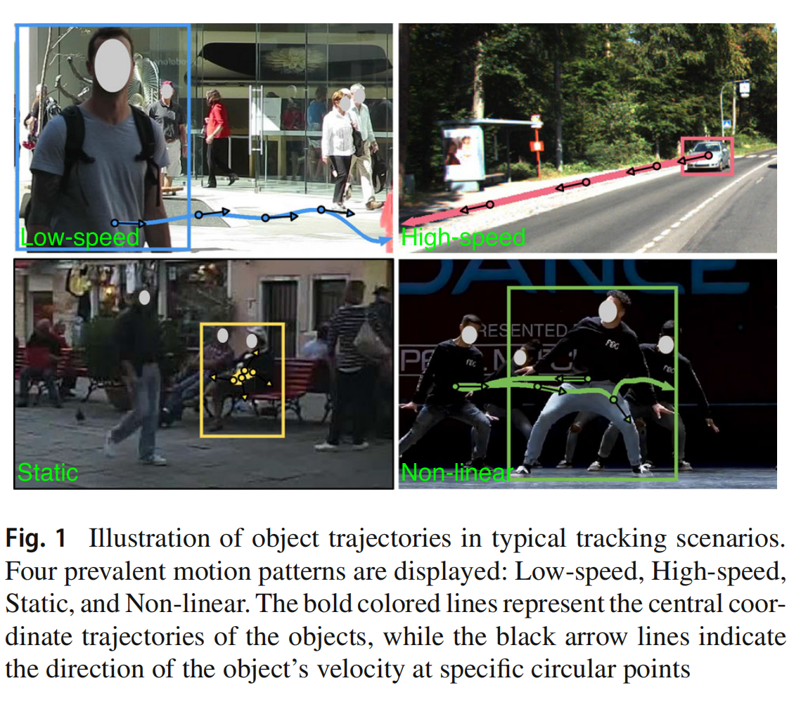 如图3所示,我们计算了相邻帧中同一轨迹的IoU(交并比)。我们发现,对于低速物体(主要在MOT17/20和DanceTrack中),大多数IoU分布在0.7到1之间,表明即使没有估计,低速物体也可以很容易地在帧之间关联。对于高速物体(KITTI中的汽车或行人),KF的均匀运动建模对于它们的跟踪至关重要,因为它们主要表现出近乎线性的运动,如图1所示。在不知道物体的运动模式的情况下,模拟非均匀运动同时保持KF状态转移公式的简单性是具有挑战性的。然而,基于上述IoU统计数据,我们可以通过确定物体是否以低速运动来抑制KF的预测位移,从而实现非均匀运动建模。因此,从轨迹重叠中得出的先验是,与高速物体相比,低速物体在相邻帧中展现出更密集的IoU分布和高分的重叠。这表明在跟踪低速物体时,由于当前状态与观测状态重叠的可能性很高,KF不需要进行积极的态估计。相反,为了跟踪高速物体,KF需要进行积极的态估计以增加与观测的重叠概率。