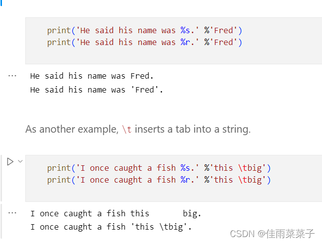 %s 字符串内容inject进去;%r把字符串一起inject进去 \t产生空格 但在%r里之后就不算特殊字符
