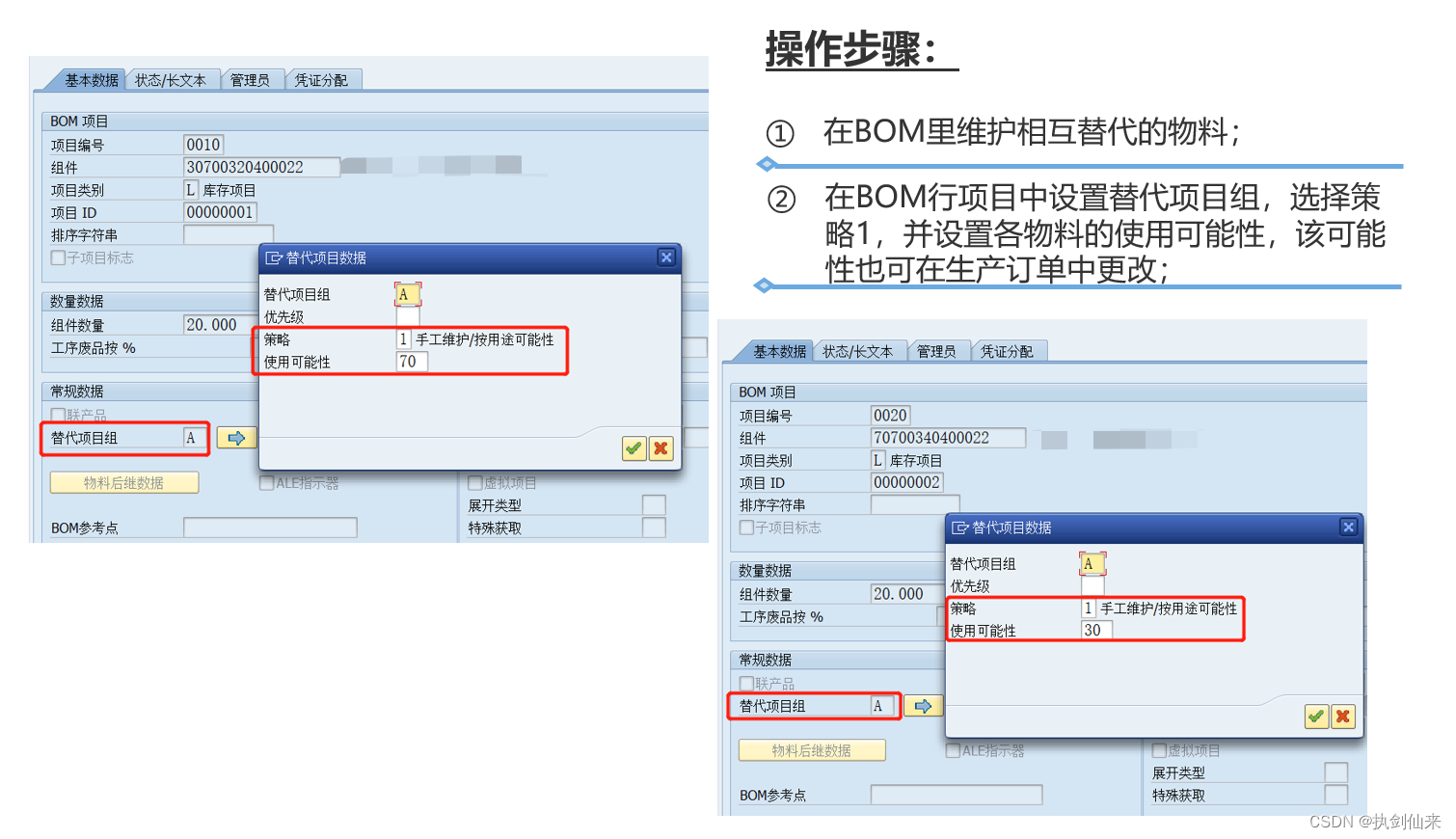 方式一:按使用可能性相互替代(相互替代的物料按照比例投入使用)