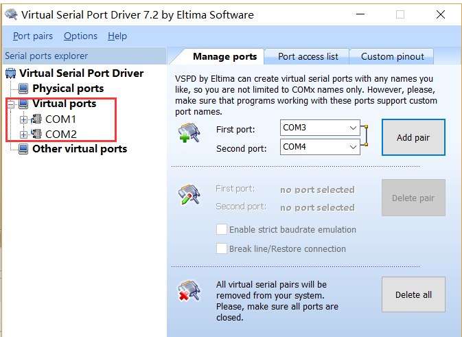 虚拟串口软件VSPD下载安装及使用 包含XCOM串口调试软件 虚拟串口软件VSPD下载安装及使用下载安装及破解使用下载下载地址安装及破解运行 vspd.exe 安装,安装好以后先不运行,将 vspdctl.dll 文件放入工程目录中,覆盖原有文件,即完成破解。使用创建COM连接对创建完成,即可打开串口助手进行测试...