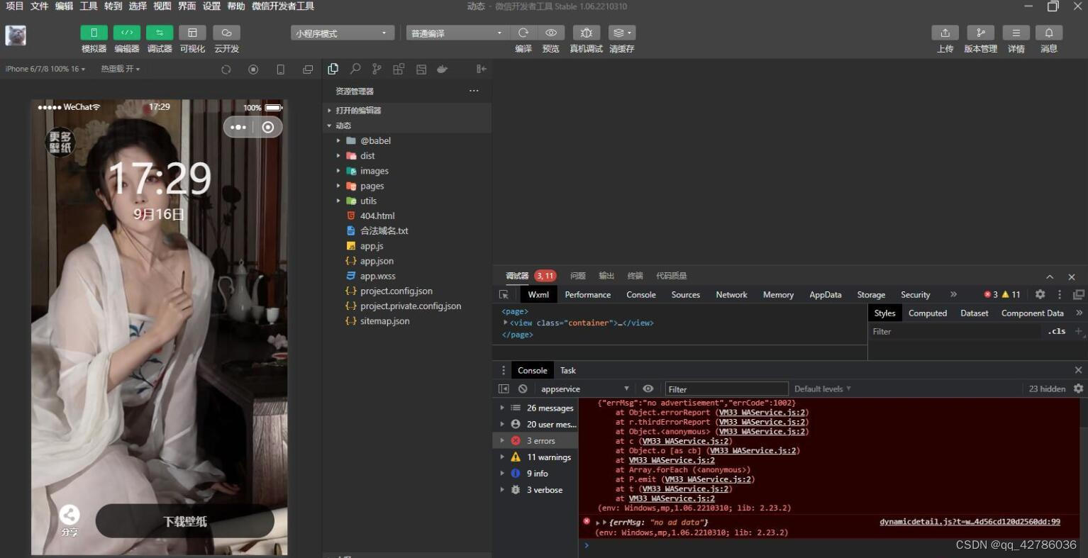 这其实就是网上版本最多的那个动态壁纸嘛,用的都是一个接口,不过这个不知是谁改的,成了LSP版,是真色啊,专搜小姐姐。 4K壁纸,静态壁纸,头像等都有保留,界面广告位很多,改广告ID就可以直接上线了。 保存内容支持每天激励视频解锁保存。 全内容自动采集,内附含了数不清的小姐姐,二次元,各种漫画动漫等资源内容