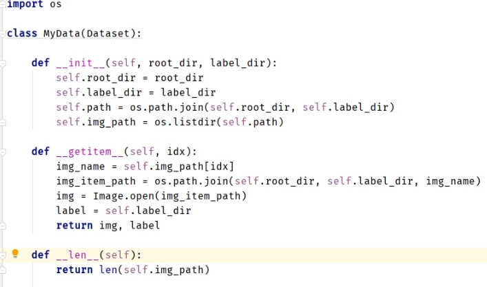 定义类Mydata,定义类的全局变量、获取图像和标签、获得数据集数量
