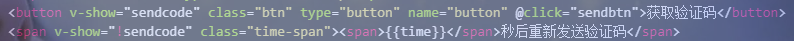 <span v-show="!sendcode" class="time-span"><span>{{time}}</span>秒后重新发送验证码</span>