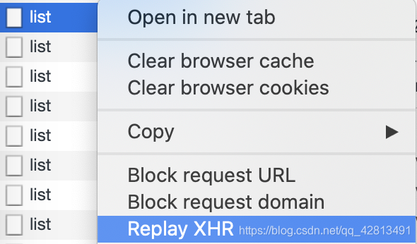 好在开发者工具提供了replay xhr,选中要重新请求的接口,右击replay xhr即可。