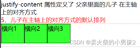 justify-content 属性定义了 父亲里面的儿子 在主轴上的对齐方式