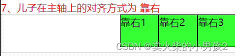 <view style="color: red;">7、儿子在主轴上的对齐方式为 靠右</view>