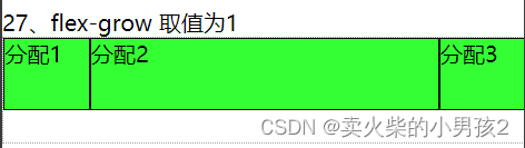 /* 27、flex-grow属性用于设置项目扩张因子。当项目在主轴方向上还有剩余空间时,通过设置项目扩张因子进行剩余空间的分配,扩张因子只能是非负数,默认值为0,即不扩张。 */