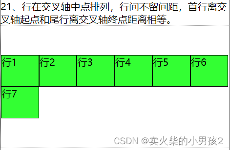 align-content: space-evenly; /* 行间间距、以及首行离交叉轴起点和尾行离交叉轴终点距离相等 */