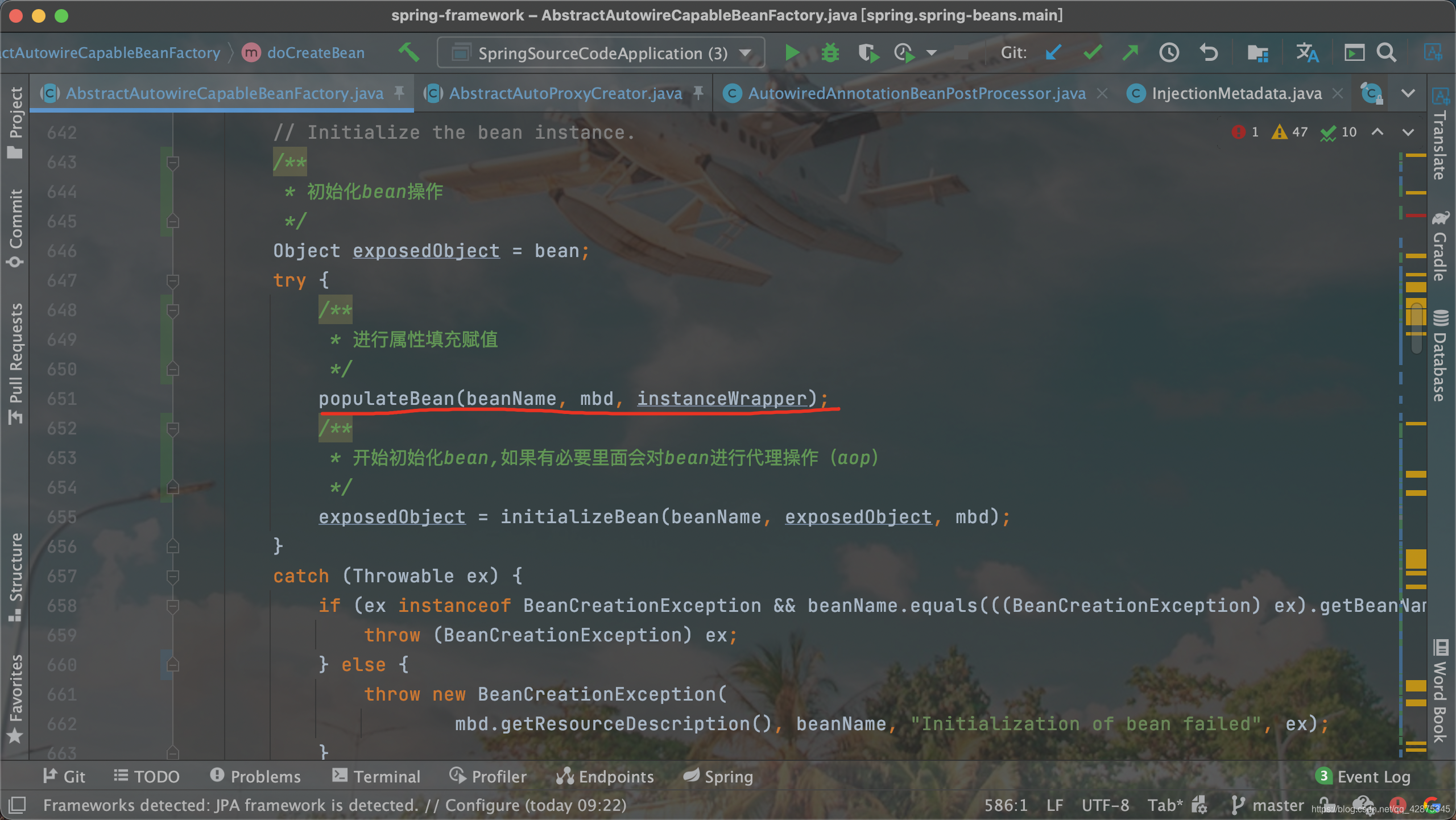 真正的属性注入在这里,这里面涉及到@Autowire、@Resource底层注入原理