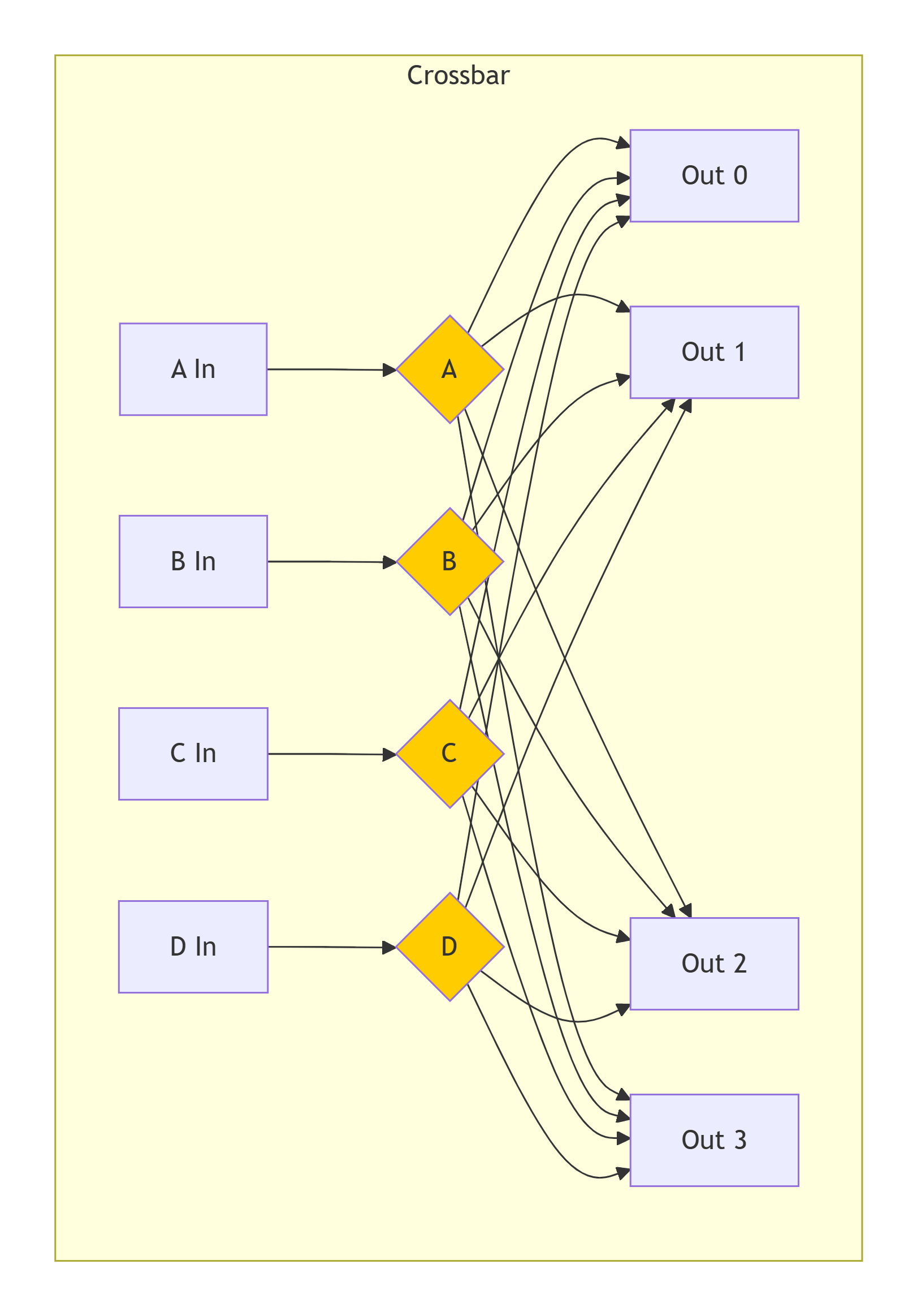 优点:实现相对简单,延迟较低(对于小规模系统)。