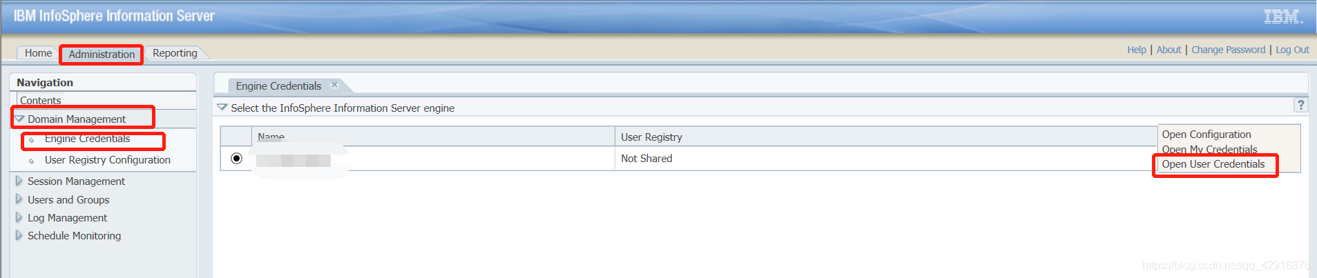 2、登录后,依次点击Administration --> Engine Credentials --> Open User Credentials