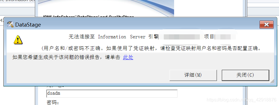 一大早上班,发现DS服务器登录不上了,说是密码错误。然后同事修改了一下服务器的密码,DS客户端登录的时候就报如下错误。