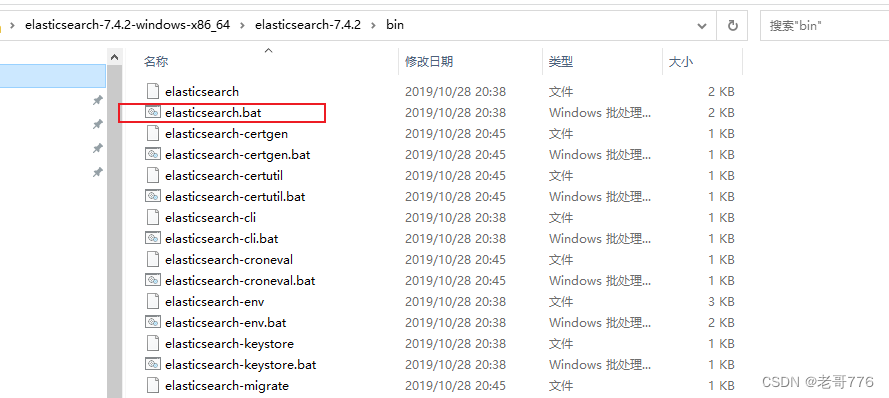 2.下载安装包后解压,进入bin目录下,双击执行elasticsearch.bat