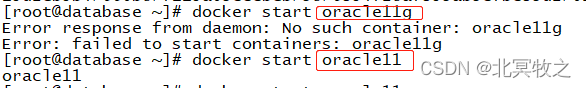 注意:因为我在执行 run 命令时,给它的名字是oracle11,没有g,所以报错了。