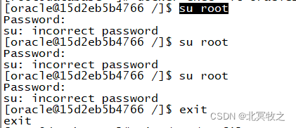 当时没有看文章,以为是虚拟机的登陆用户,结果输入密码错误,后来一看原来是在docker中,然后就退出来了。接着就进行了下面的步骤,一直到切换回 oracle 用户时报错了,我以为这篇文章又是坑爹的。后来才发现是我错了。不应该退出 docker ,直接在docker中切换 root 用户。