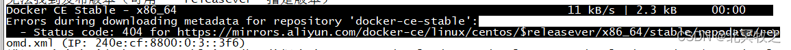 - Status code: 404 for https://mirrors.aliyun.com/docker-ce/linux/centos/$releasever/x86_64/stable/repodata/rep