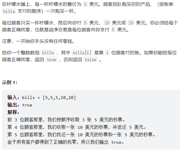 第三题:860.柠檬水找零