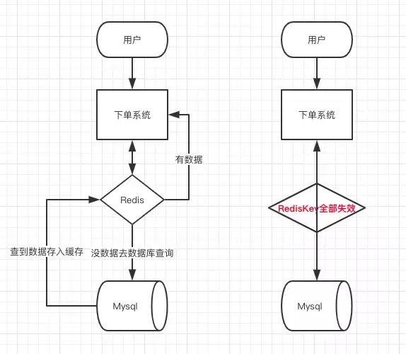 同一时间大面积失效,那一瞬间Redis跟没有一样,那这个数量级别的请求直接打到数据库几乎是灾难性的,你想想如果打挂的是一个用户服务的库,那其他依赖他的库所有的接口几乎都会报错,如果没做熔断等策略基本上就是瞬间挂一片的节奏,你怎么重启用户都会把你打挂,等你能重启的时候,用户早就睡觉去了,并且对你的产品失去了信心,什么垃圾产品。