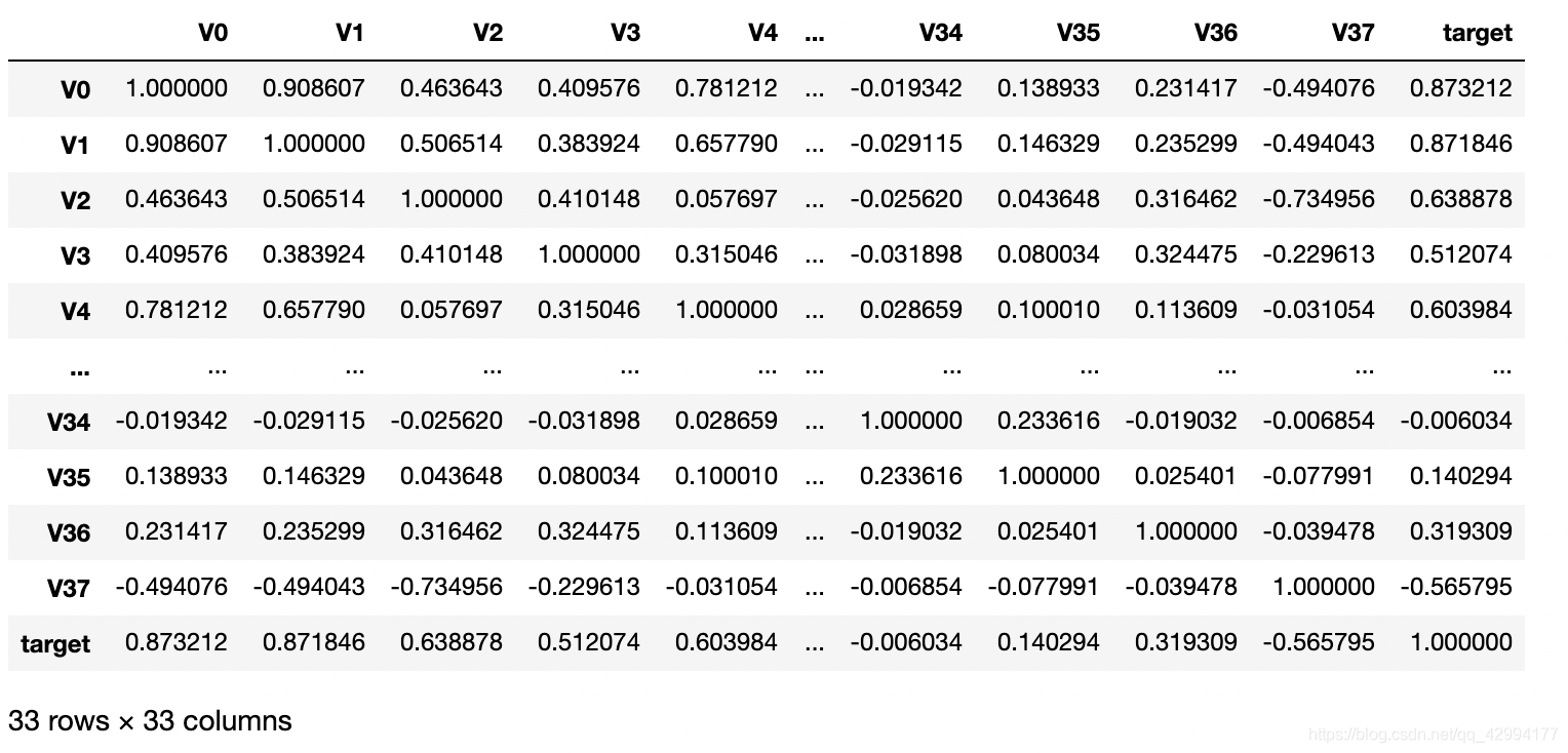 2、pd.corr() 输出pd,可控制参数,默认pearson相关性
