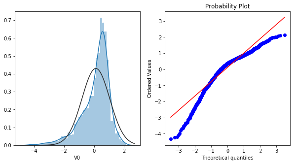 # 对比同一特征变量V0在训练集和测试集中的分布情况