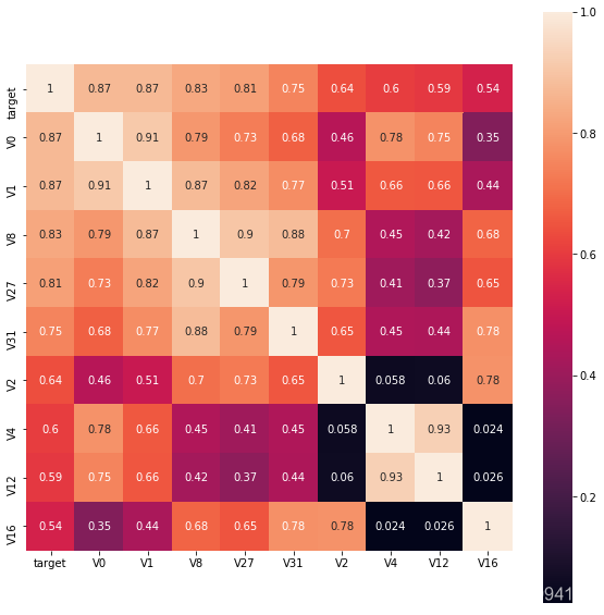 cols = train_corr.nlargest(k, 'target')['target'].index