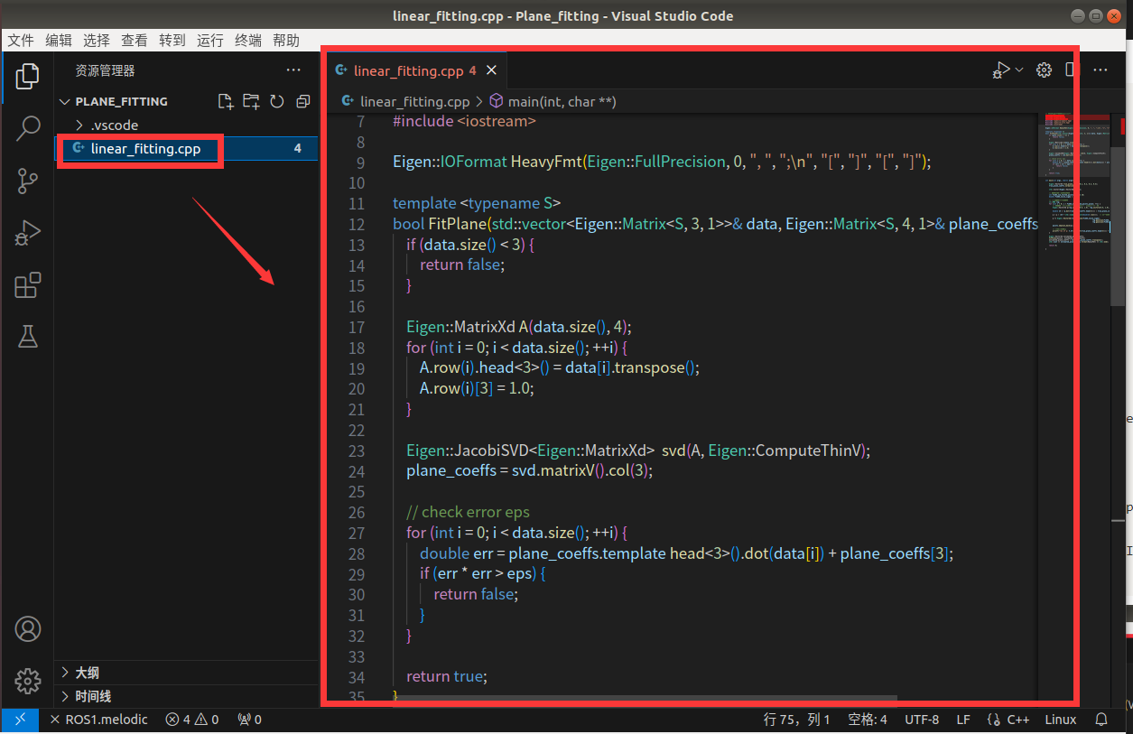 在linear_fitting.cpp粘贴如下代码并保存(Ctrl+S)