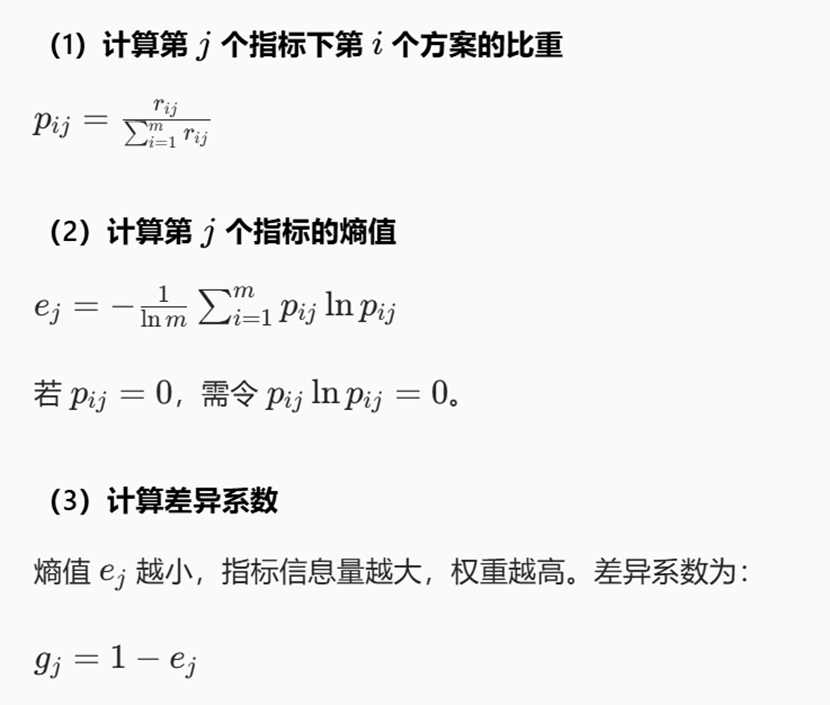 熵权法通过指标的信息量客观确定权重,步骤如下: