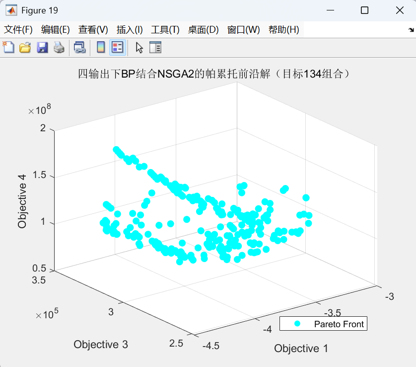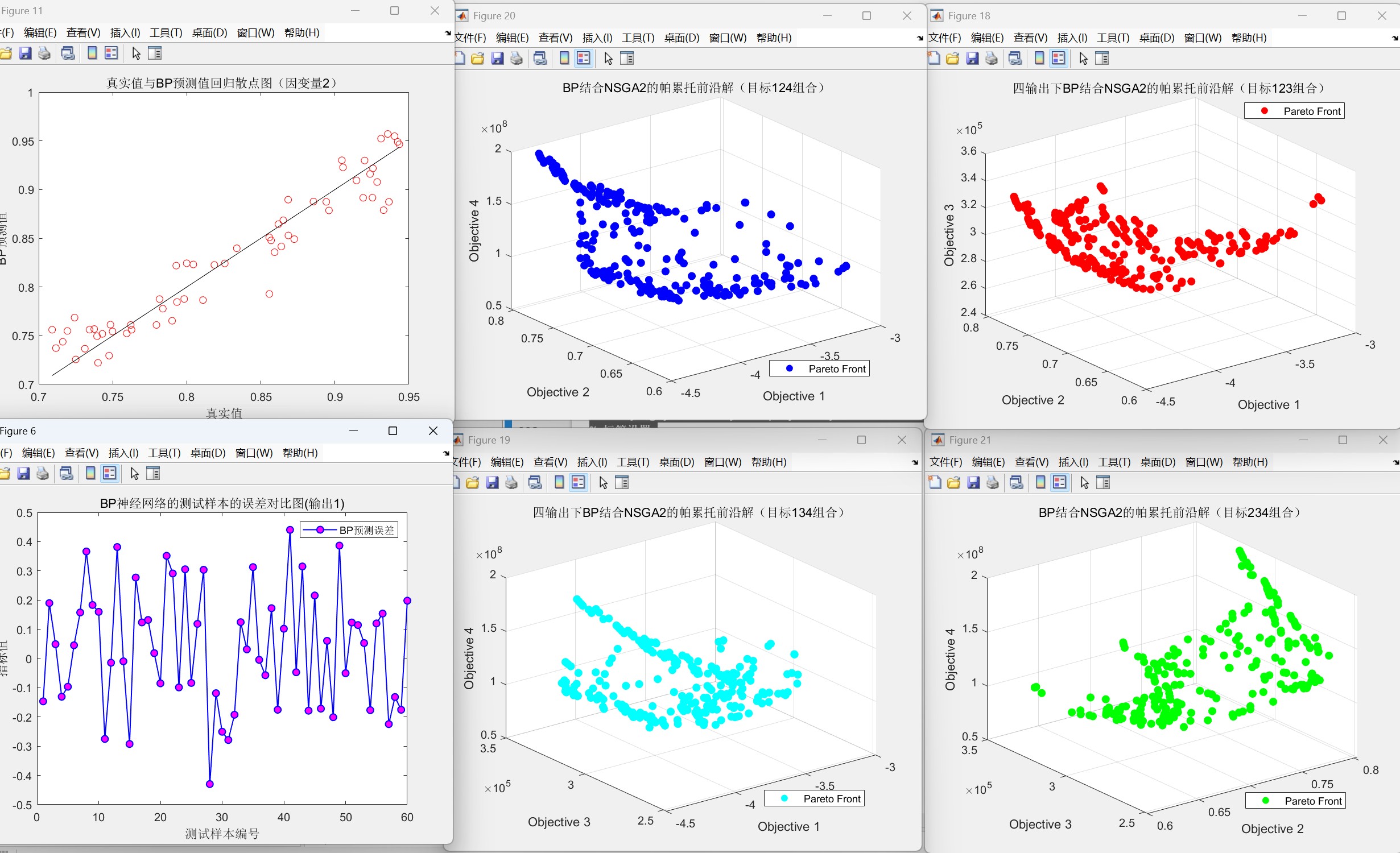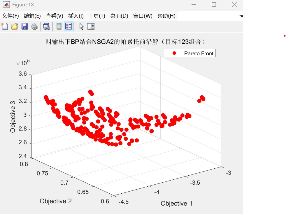 BP_NSGA2)BP神经网络做代理预测模型,多目标遗传NSGA2寻优求最佳因变量对应的最佳自变量组合和帕累托前沿解