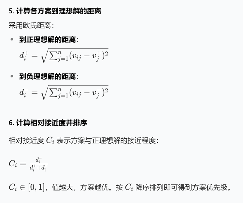 首先,Topsis,也就是逼近理想解排序法,是一种多准则决策分析方法。它的基本思想是通过计算各方案与理想解(正理想解)和负理想解之间的距离来进行排序。理想解是各指标的最优值,负理想解是各指标的最劣值。然后根据相对接近度来排序,相对接近度越高,方案越优。