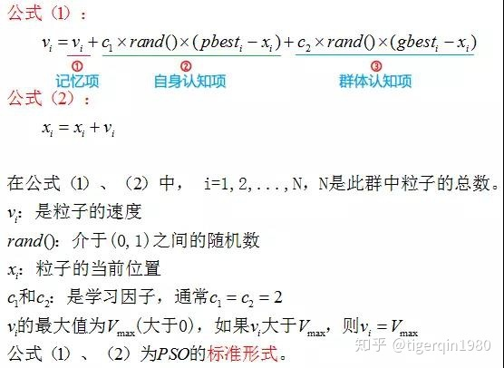 公式(1)的第③部分称为【群体认知项】,是一个从当前点指向种群最好点的矢量,反映了粒子间的协同合作和知识共享。粒子就是通过自己的经验和同伴中最好的经验来决定下一步的运动。