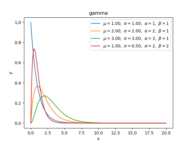 指数分布【连续型】是 α 为 1 时 gamma 分布的特例。