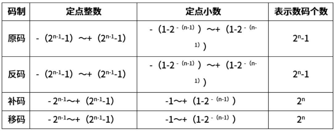 2、原码/反码/补码/移码的表示范围(如下图所示)