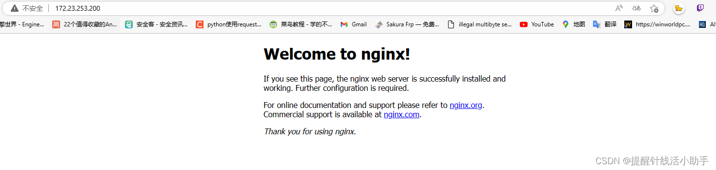 因为我用的是windows环境配置的docker导致无法从主机直接ping容器,所以Nginx使用的是Multipass虚拟机.