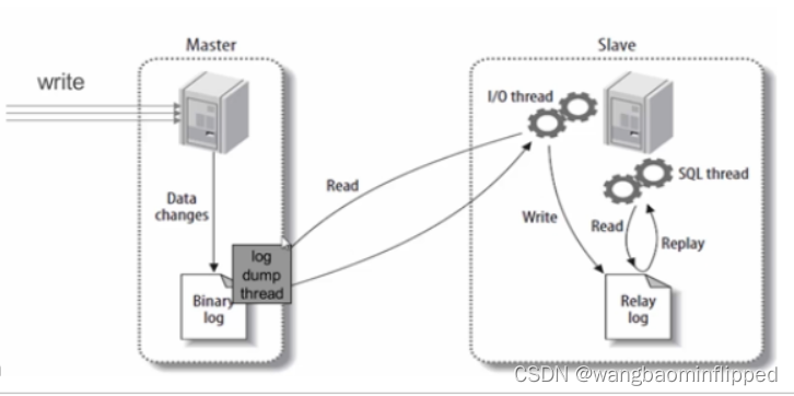 step2:当slave连接master时,master会创建一个log dump 线程,用于发送 binlog 的内容。在读取 binlog 的内容的操作中,会对主节点上的 binlog 加锁,当读取完成并发送给从服务器后解锁。
