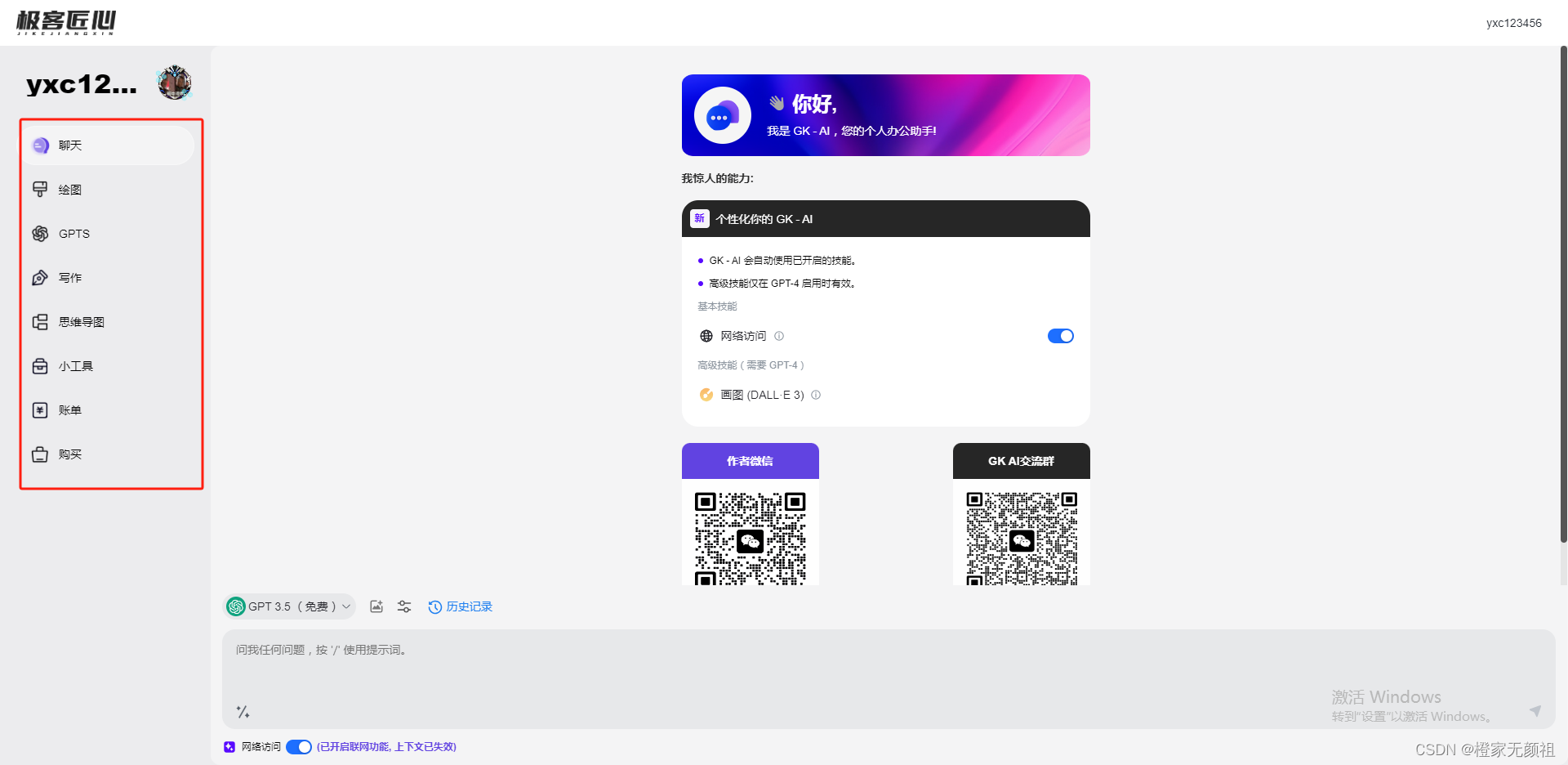 GK AI 小助手(永久免费)用户使用教程 欢迎来到GKAI,您的超级智能助手!我们的产品是当今办公室白领工作者的终极利器,将世界顶尖的人工智能技术集合于一身,以助您事半功倍!GKAI不仅融合了诸如ChatGPT、Claude、Gemini、Midjourney智能绘图、DALLE3智能绘图等一流AI工具,更汇聚了GPT Store的无尽资源,为您提供各种模板助力办公生活,从而让您事半功倍!我们独特的写作模块将为您提供灵感无限的创作力量,而智能生成的思维导图工具则将为您的思维整理提供便捷支持。不仅如此,我们还提供了一系列AI小工具,助您优化文案和图