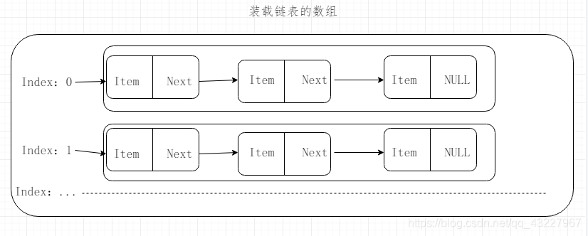 HashMap,她的构造为单向链表与数组,链表的概念可参考 LinkedList 一文。首先我们先一张图简单看看她结构。