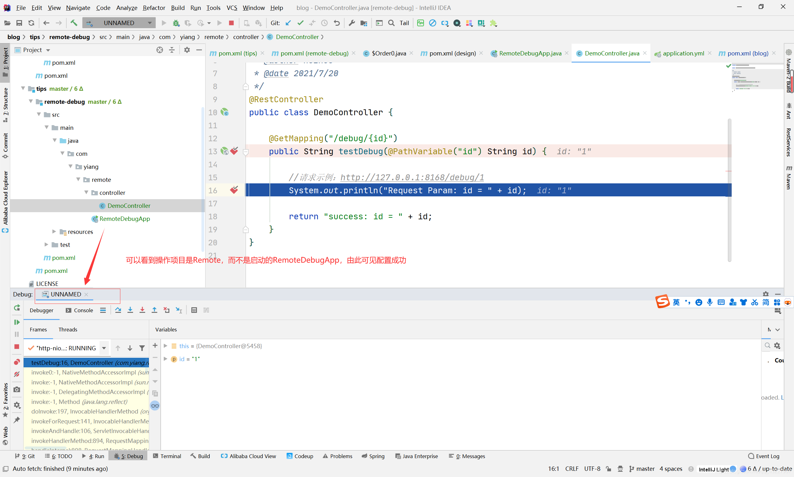 步骤4:启动IDEA中配置好的Remote,可以看到链接信息