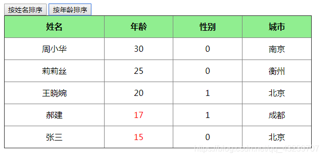 { name: "张三", age: 15, sex: 0, city: "北京" },