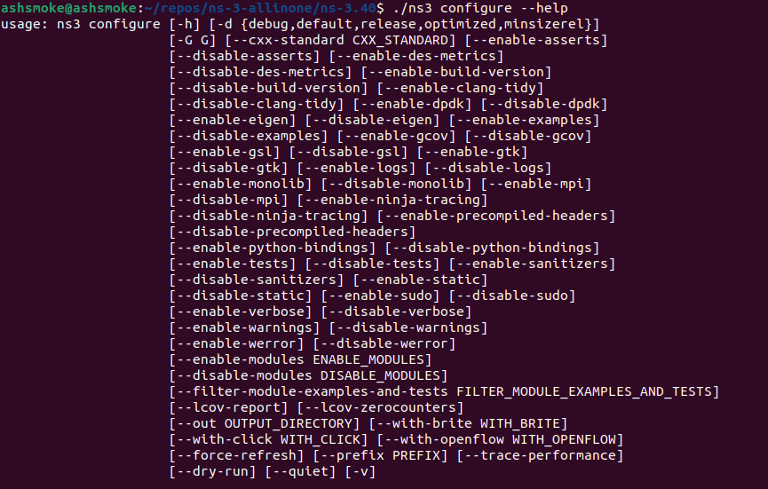 ./ns3 configure --help