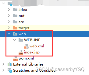 如果你不是通过idea模板直接创建的JavaWeb项目,而是自己创建的空项目,idea是不会认定这是JavaWeb项目。JavaWeb项目的一个标志信息就是有一个web目录(包含web.xml)。如下图: