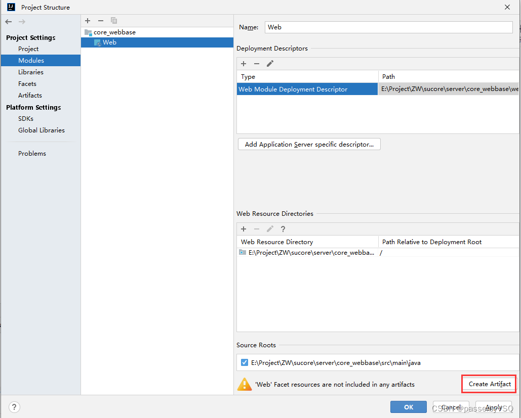 然后点击Apply和OK即可成功创建web目录和添加artifact。