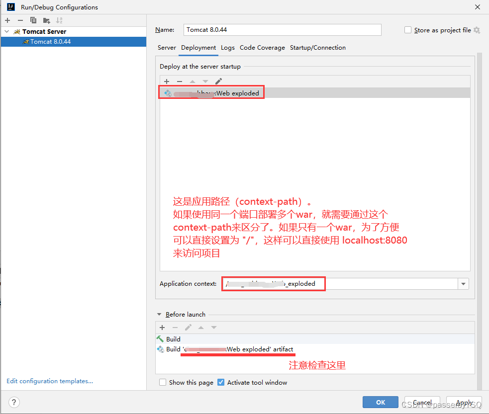 如果不点Fix,也没关系。可以手动来添加(下图)。由于在 “2. 添加artifact” 我们只添加了一个artifact,所以直接就设置成功了,否则在这里可能会跳过去让你选择哪个artifact。添加成功后让然需要检查上图标注的注意事项。