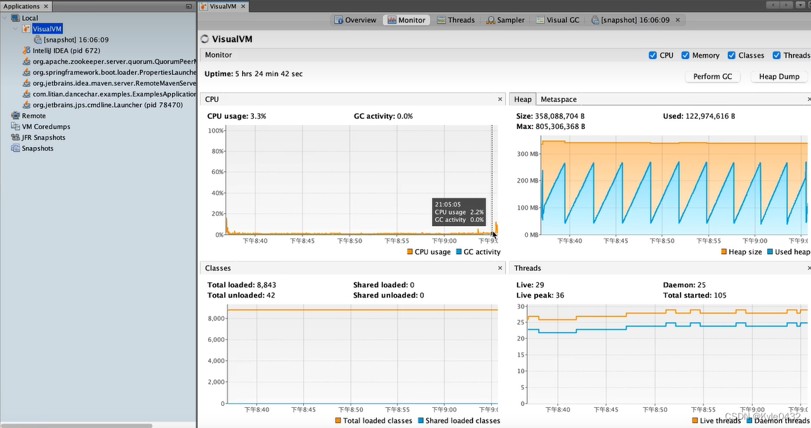 导入导出时CPU、内存情况(根据VisualVM可以看出CPU、内存都是非常稳定的):